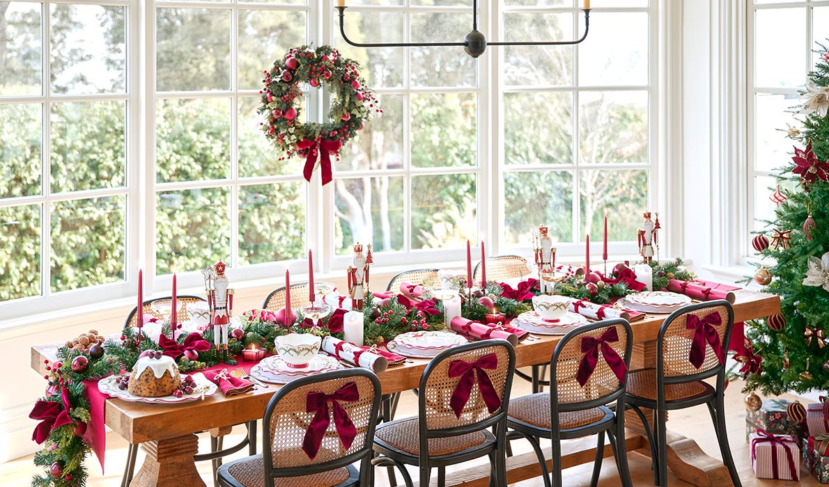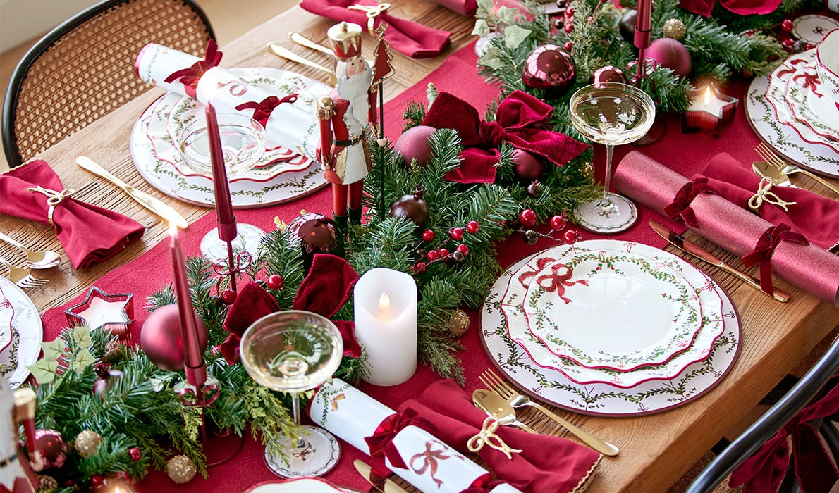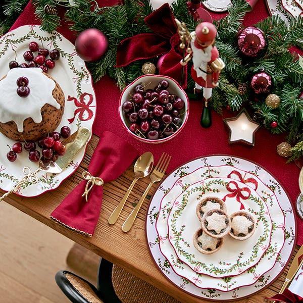 Forever in style, a traditional Christmas table suits every space and celebration. Our Merry collection embraces classic cherry reds paired with festive gold hues for a look that feels wonderfully timeless.
