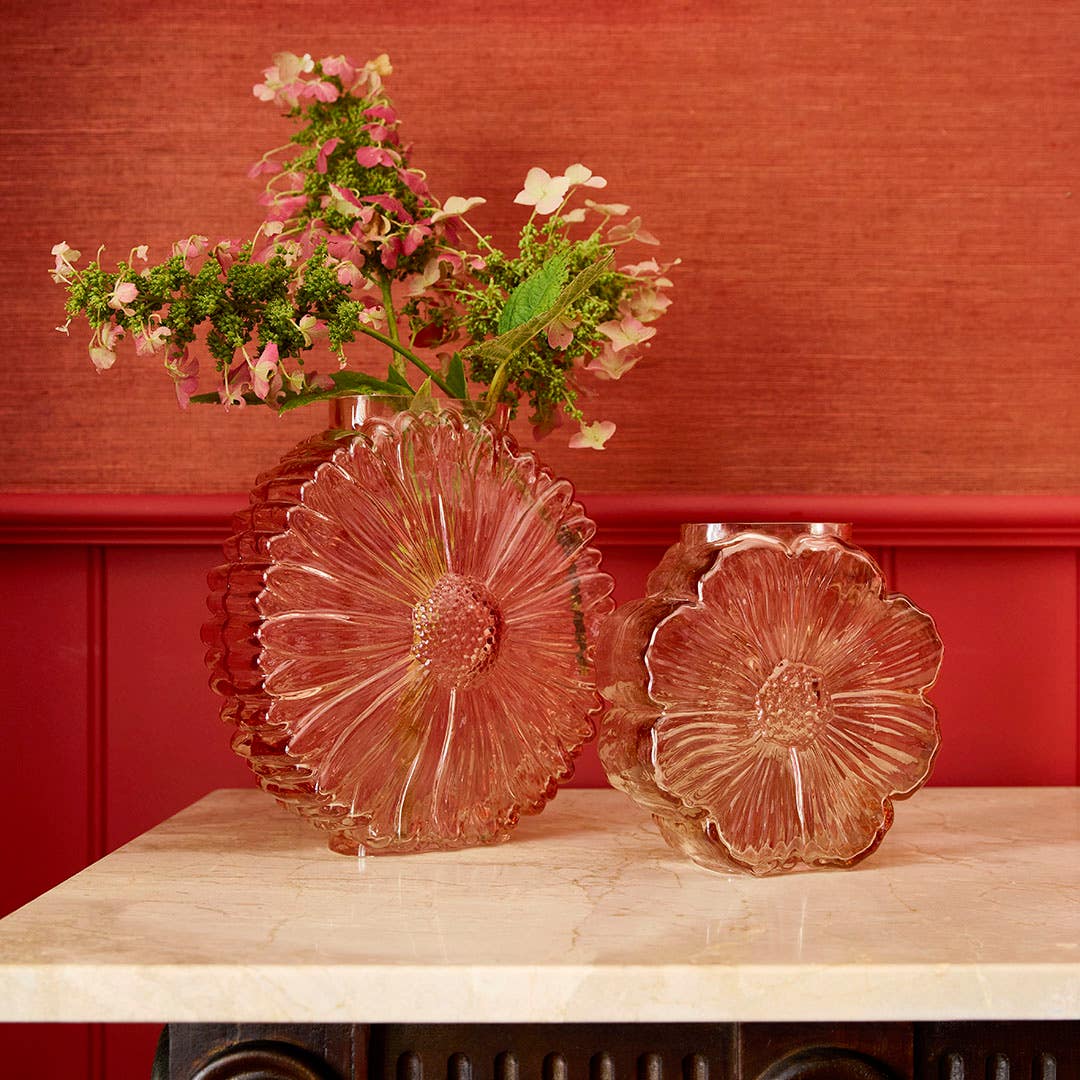 The Daisy Glass Vase in Large brings a bold decorative statement with its daisy-inspired shape in pink glass. Its floral shaping and translucent finish adds personality and interest to shelves or tabletops. A standout piece that brings cheerful colour and texture to your home.