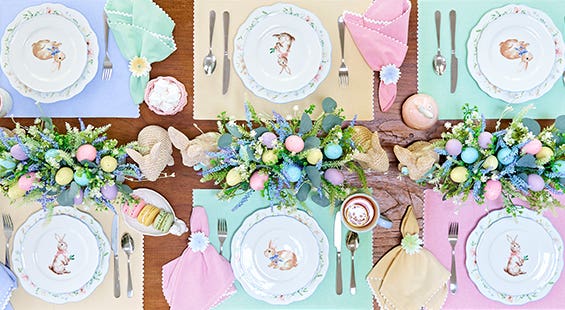 Style the perfect table with soft colours, layered textures, and charming bunny details.