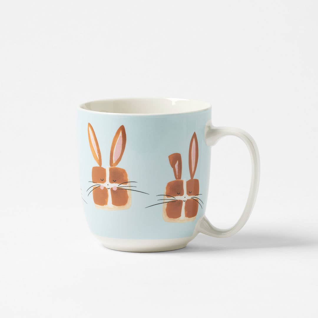Enjoy your morning coffee with a playful Easter twist using the Hot Cross Bunnies Barker Mug. Featuring an adorable design of hot cross buns with bunny ears and whiskers, this mug adds an element of fun to your routine. Crafted from New Bone China, it is also microwave and dishwasher safe.
